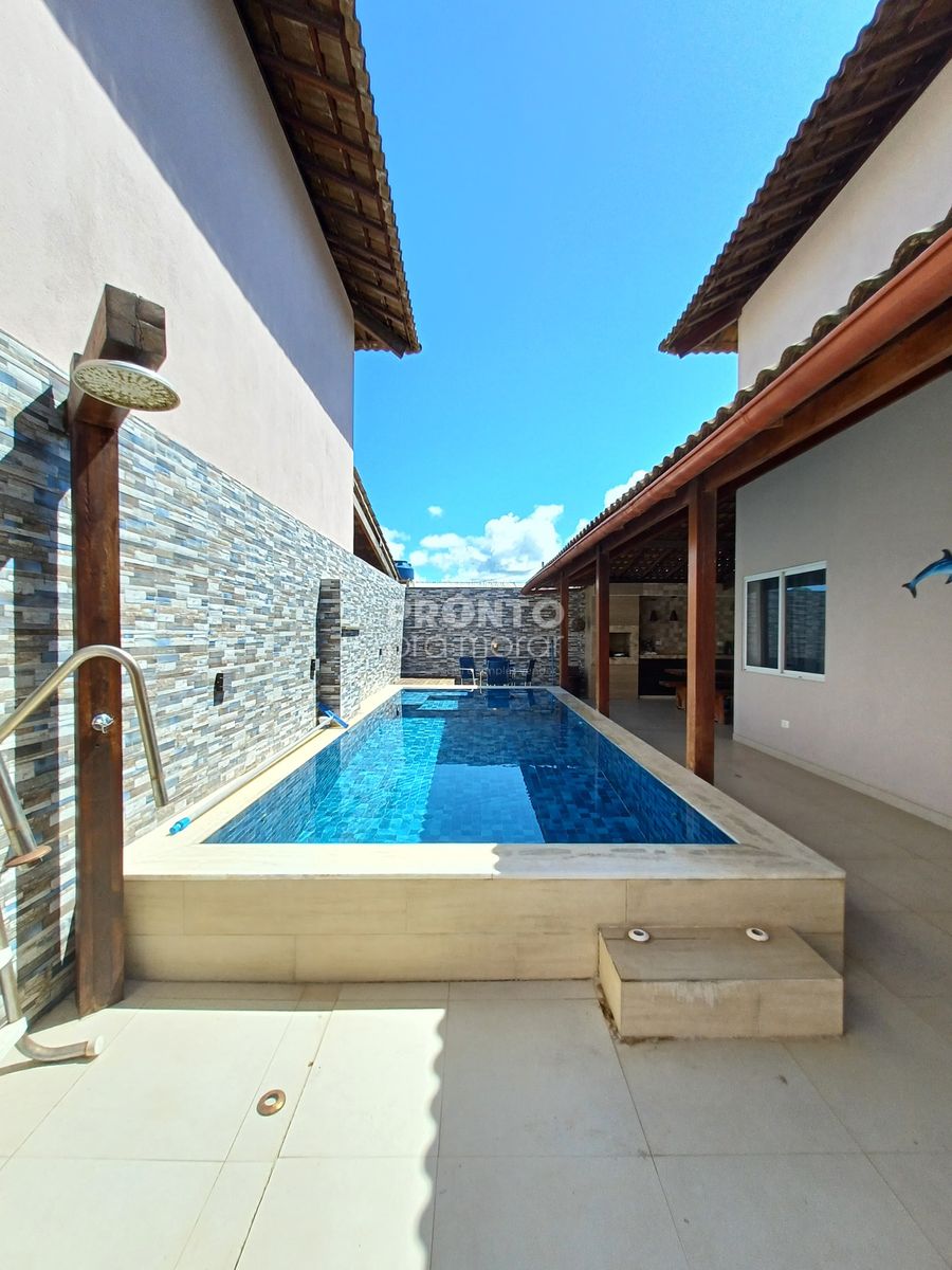 O imóvel possui na pavimento térreo: terraço, sala para dois ambientes, 2 quartos sendo 1 suíte, 1 wc social, cozinha, área de serviço, piscina, churrasqueira, 02 vagas de garagem.