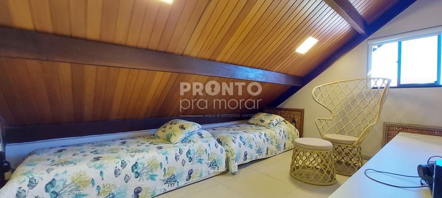 No pavimento superior três quartos sendo dois suítes. Além de piscina privativa, área gourmet com churrasqueira e duas vagas de garagem.