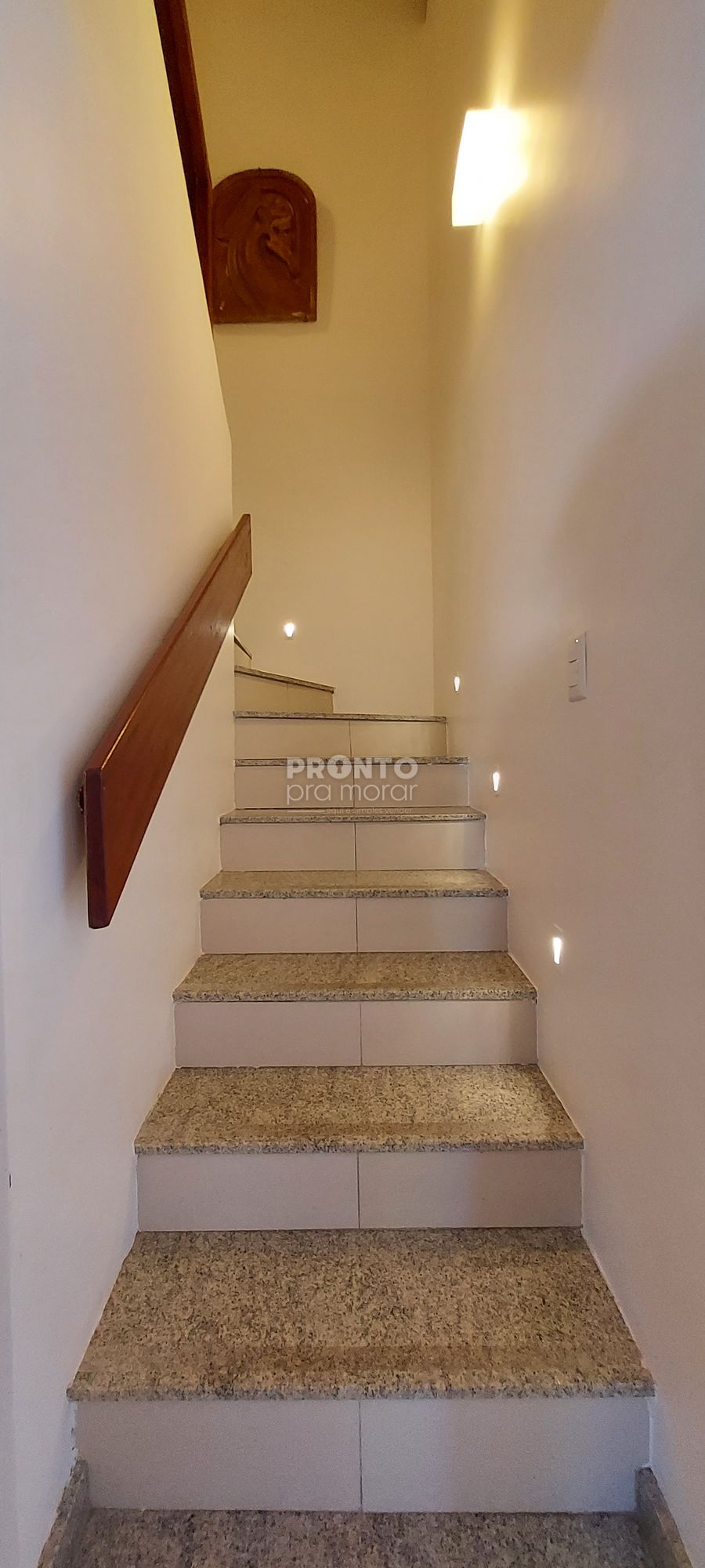 O imóvel possui no térreo varanda, sala para dois ambientes, uma suíte, depósito, cozinha, área de serviço.