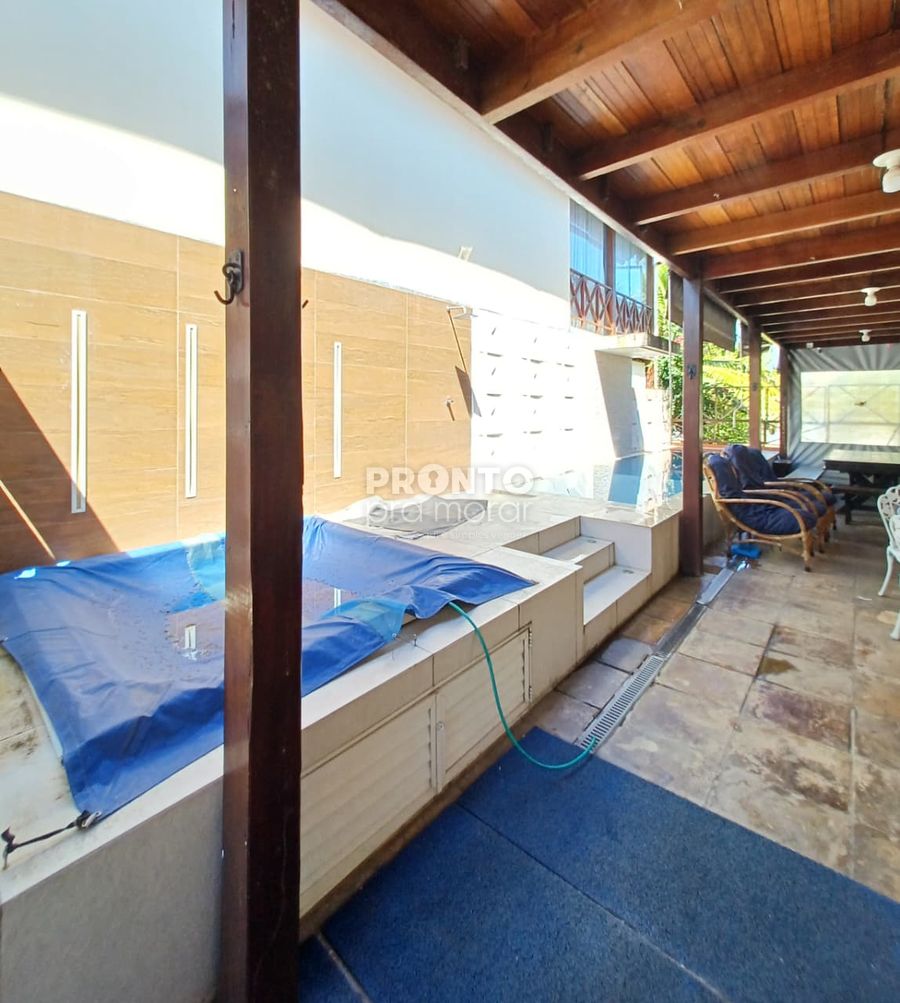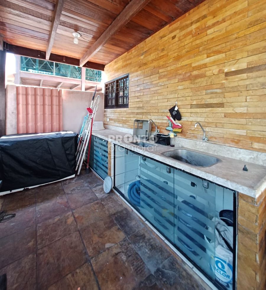 No piso inferior possui sala ampla para dois ambientes, três quartos, cozinha moderna e bem equipada, três banheiros sociais, área de serviço, duas Vagas de garagem e uma piscina privativa.