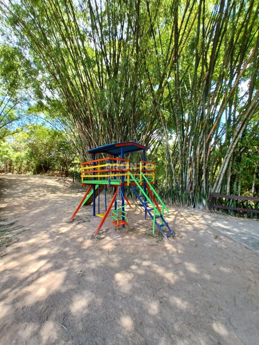 O condomínio possui 7 lagos, cachoeira, tirolesa, quadra de vôlei, playground, salão de jogos, trilha ecológica, mini mercado, salão de festas, churrasqueiras, baias de cavalos, placas de energia solar.