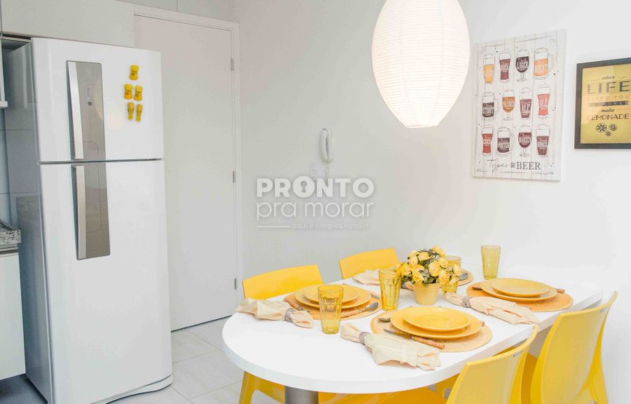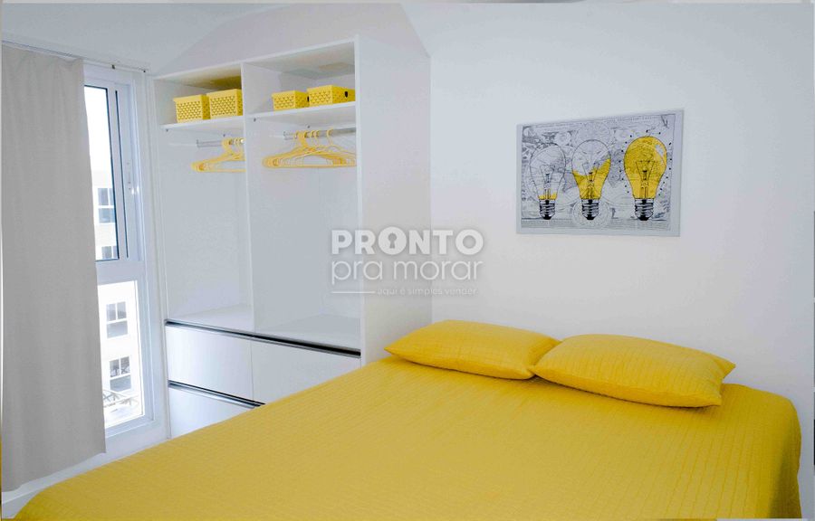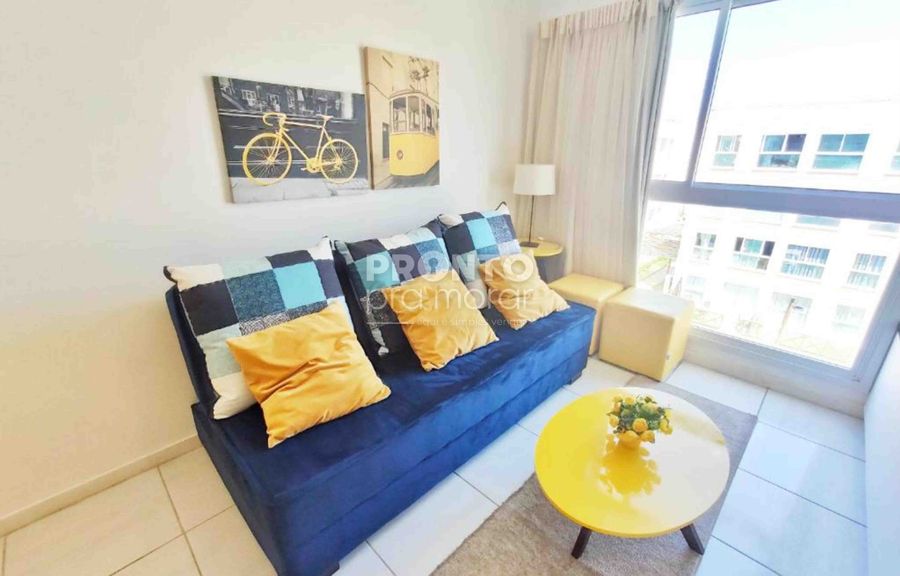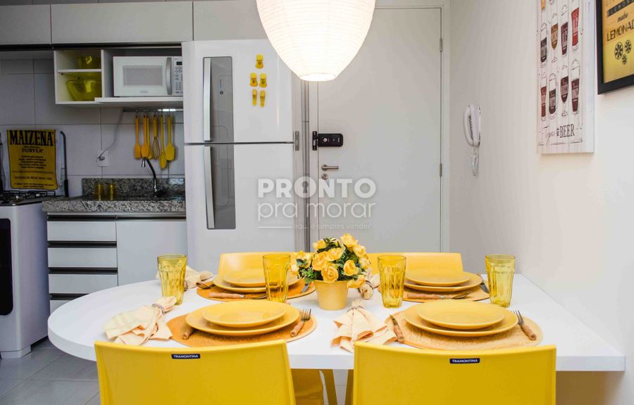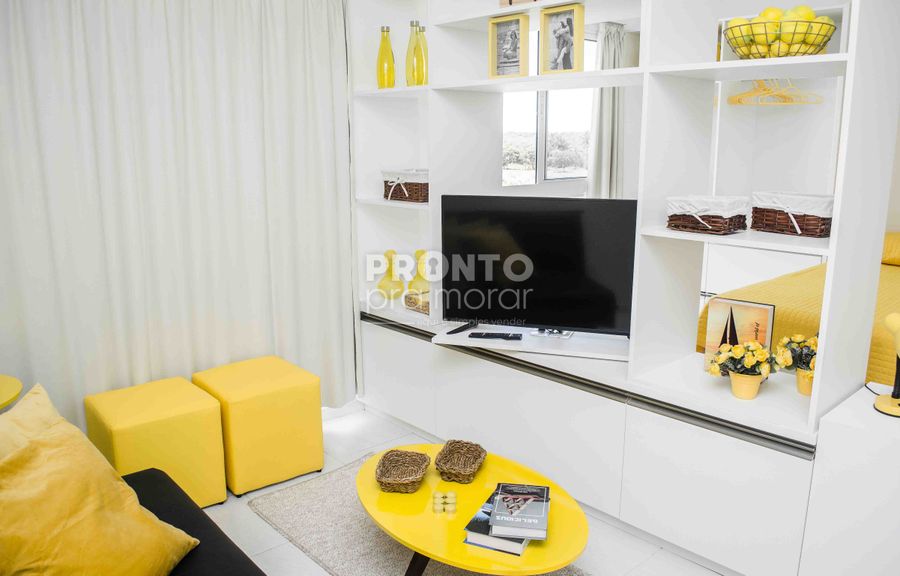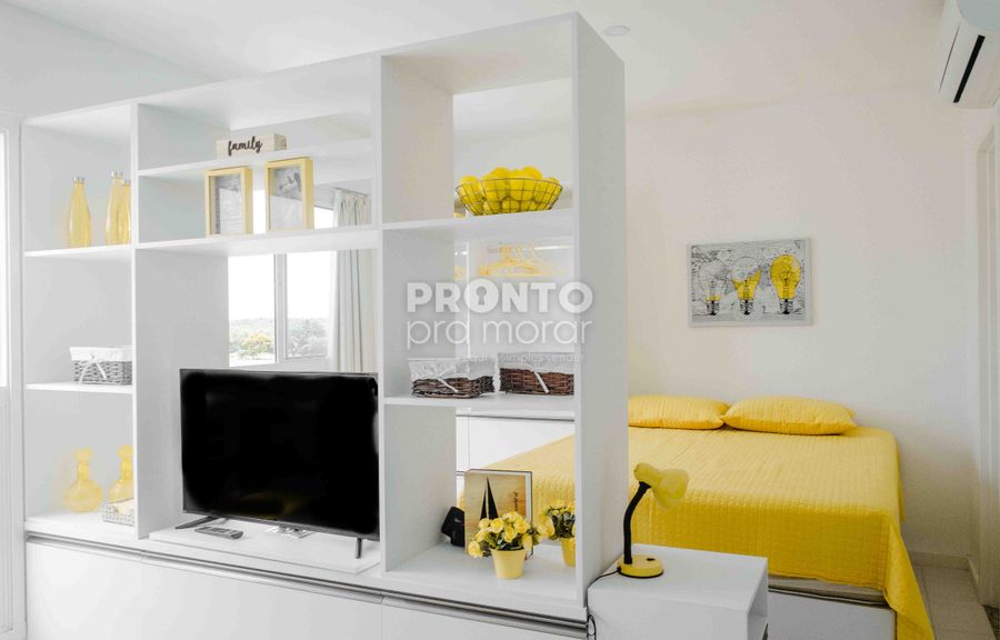 Imóvel com 32,76m², sala, cozinha americana, um quarto suíte.