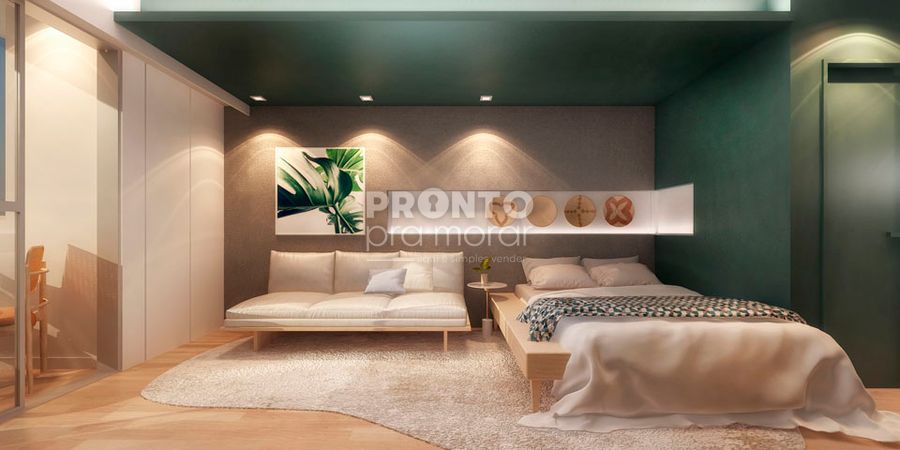 Flat com 31,14 m² de área construída, sendo sala/quarto e banheiro social.