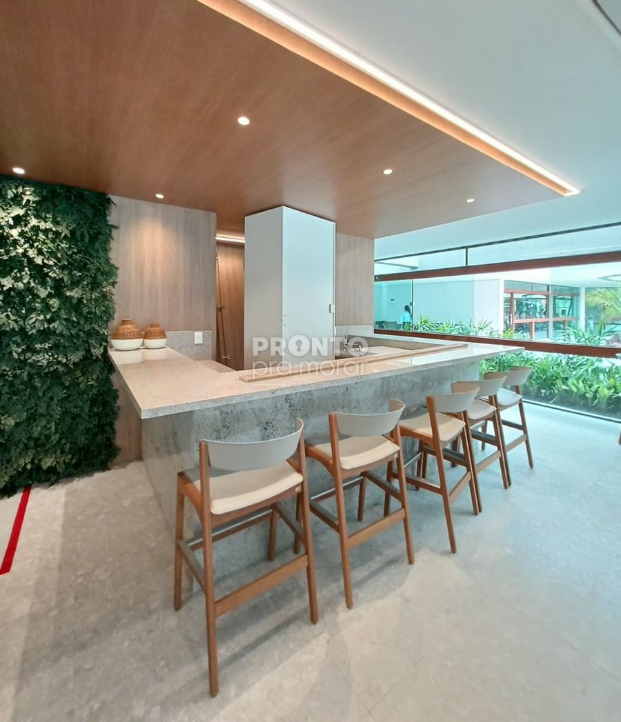 O condomínio possui piscina, painel solar, varanda gourmet, restaurante, pet wash, recepção, fechadura eletrônica, playground, bicicletário, churrasqueira, quadra, fitness, pet place.