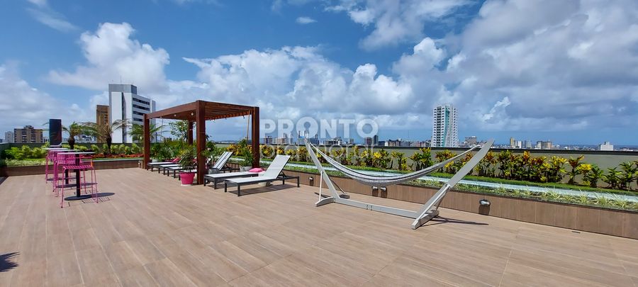 Excelente flat mobiliado localizado na Ilha do Leite, com 21,69m² de área construída.