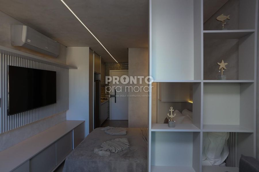 O imóvel tipo studio, mobiliado, com 1 quarto, 1 wc social, cozinha e 1 vaga de garagem.