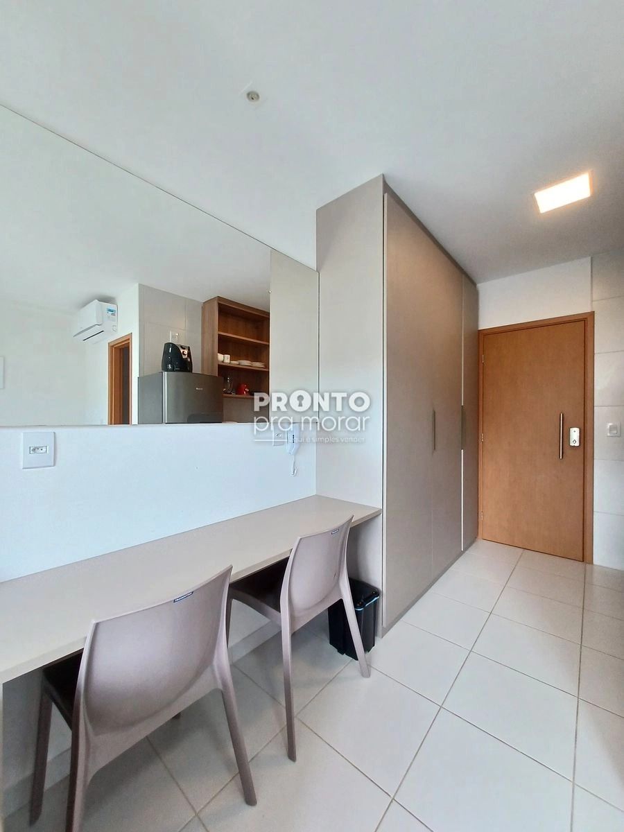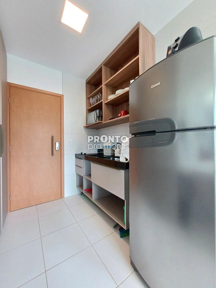 O imóvel possui 29,93m² de área privativa, varanda, sala/quarto, banheiro, cozinha e uma vaga de garagem.