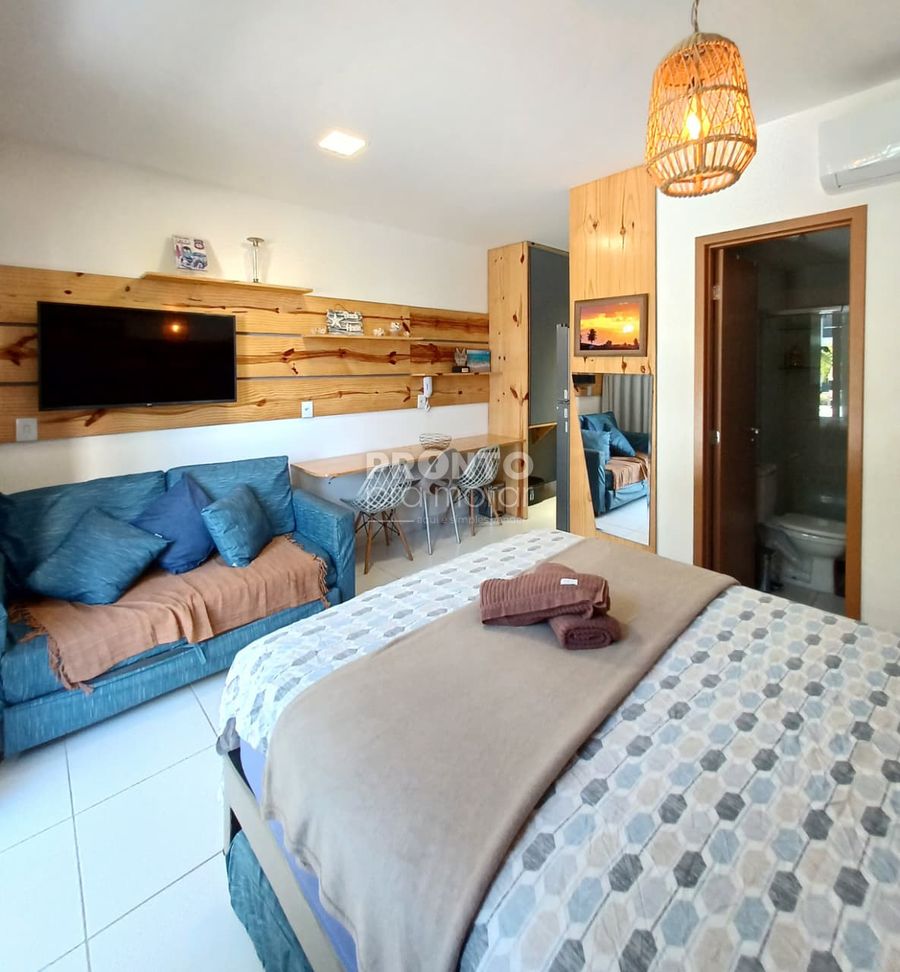 Excelente flat mobiliado localizado em Muro Alto, com 28,55m² de área útil.