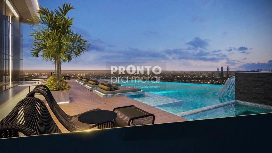 O edifício dispõe de piscina com borda infinita, espaço gourmet, coliving com sala de reunião, mini market, lavanderia e portaria 24hs.