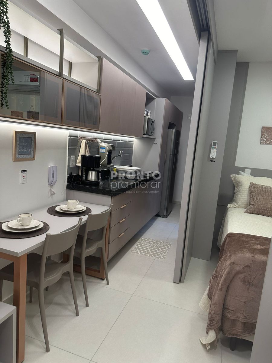O imóvel possui varanda, quarto/sala, banheiro e uma vaga de garagem.
