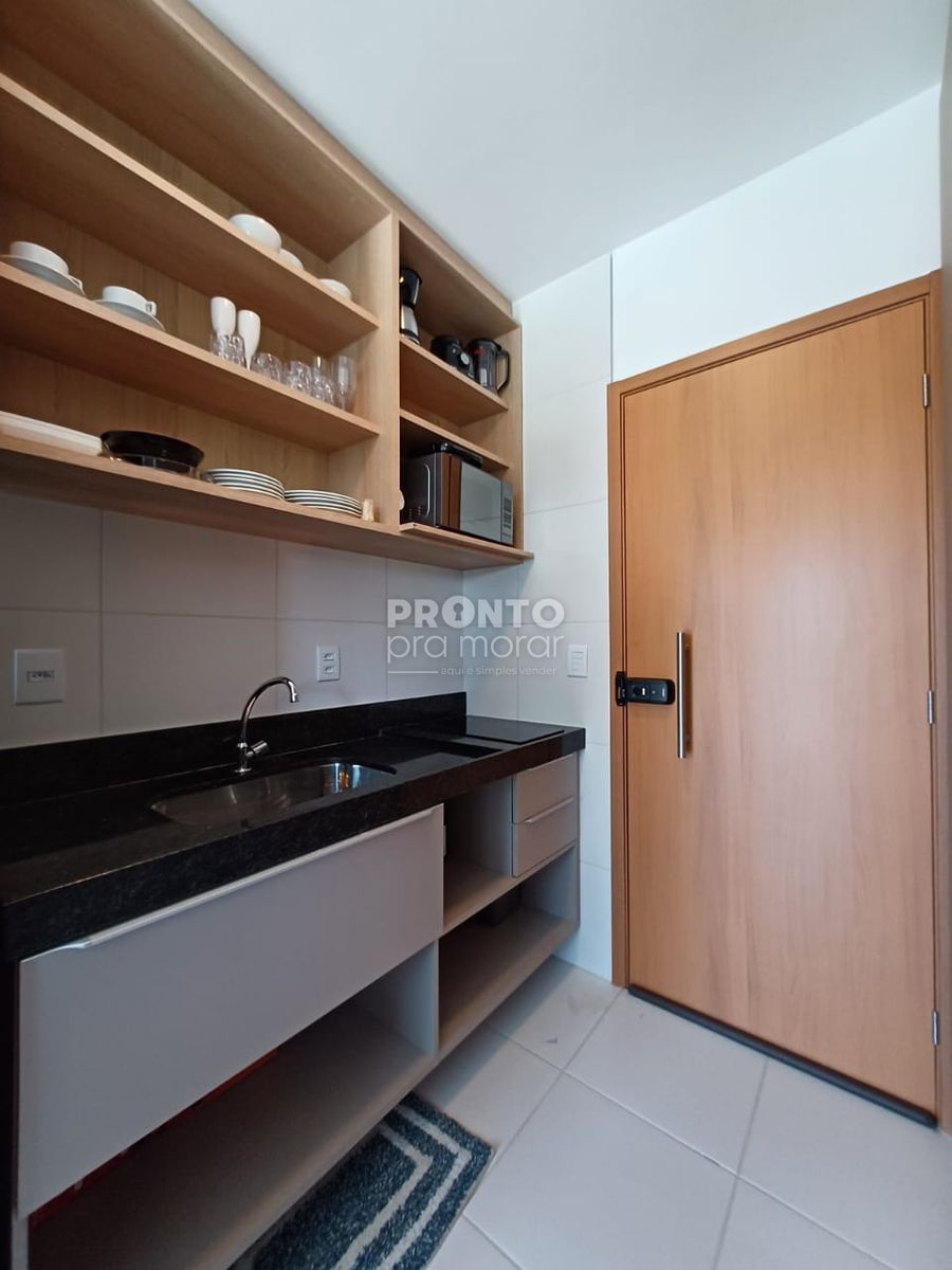 O imovel possui varanda, sala/quarto, banheiro social, cozinha e uma vaga de garagem rotativa.