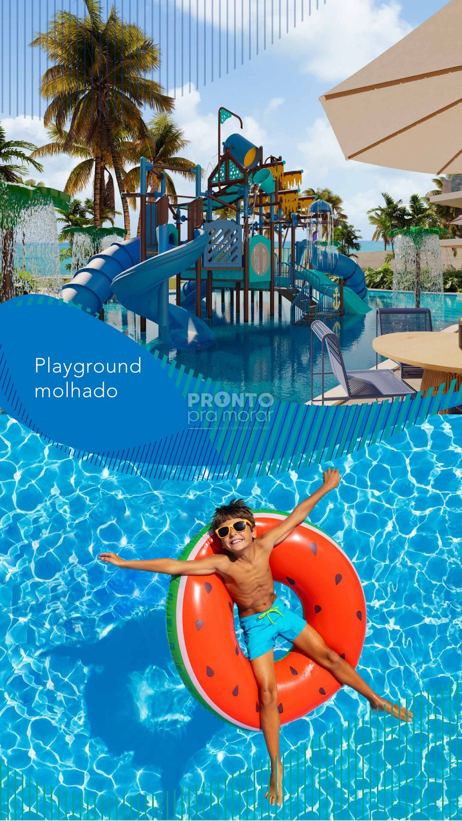Playground molhado para a diversão das crianças;