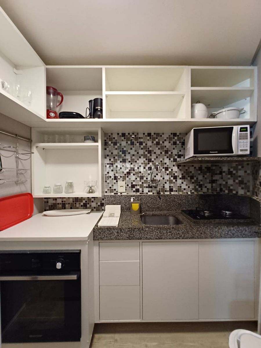 O imóvel possui varanda, sala para dois ambientes, um quarto, banheiro social, cozinha e uma vaga de garagem.