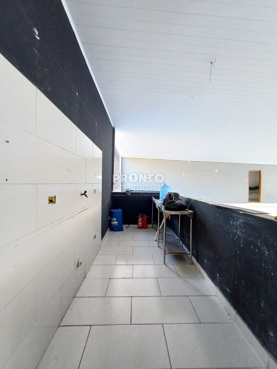 No pavimento superior há um amplo salão, bar, uma área para palco, escritório, área de serviço e mais dois banheiros sociais.