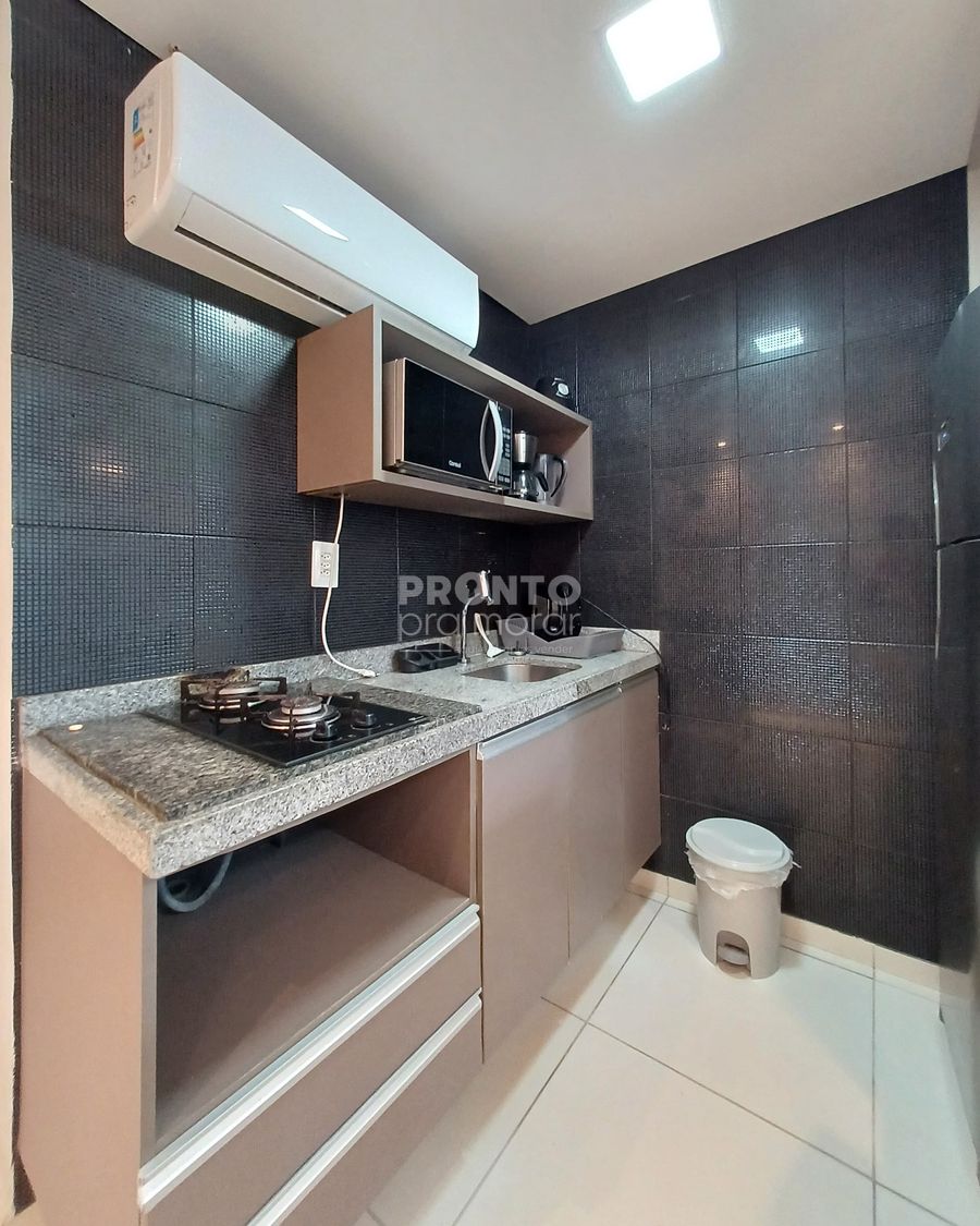 O imóvel possui 21,63m² com Varanda Gourmet, quarto/cozinha, banheiro social uma vaga de garagem.